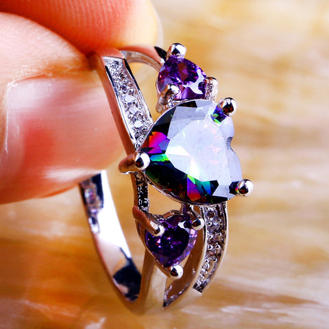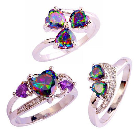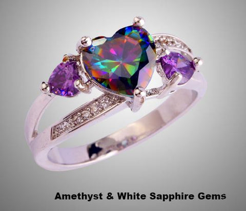 Dazzling Silver Ring with Elegant Mystic Topaz Hearts! Some styles include Amethyst and White Sapphire gems. Available in 5 Beautiful Styles!