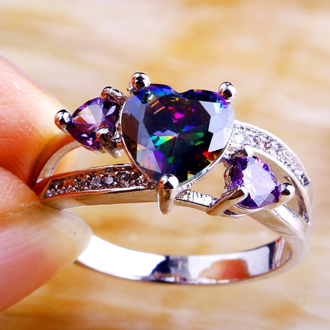 Mystic Topaz Silver Heart Ring